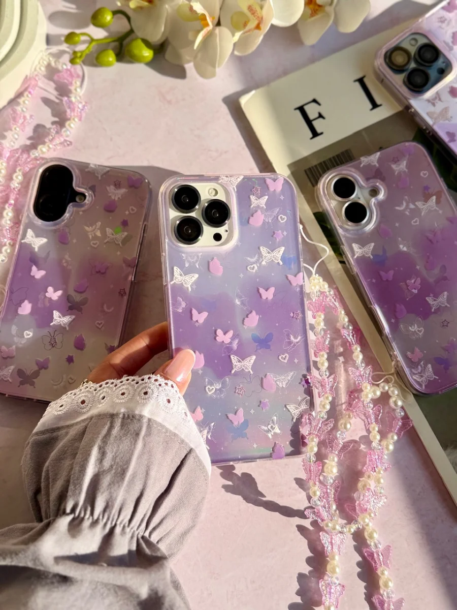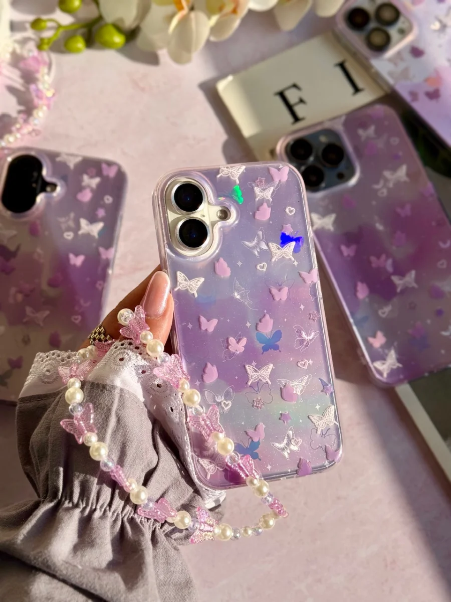 قاب Holo butterfly با آویز برای آیفون